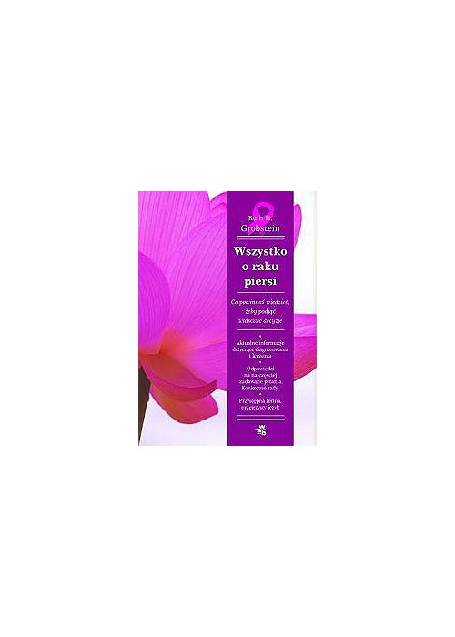 Rak piersi - taka diagnoza zwykle brzmi jak wyrok, ale nie musi być wyrokiem. Książka Ruth H. Grobstein to praktyczny poradnik dla kobiet dotkniętych rakiem piersi. Autorka opisuje to, co powinna wiedzieć każda pacjentka. Skupia się na tym, co najważniejsze i co dobrze zna z praktyki klinicznej. Nie obiecuje, że wszystko będzie dobrze. Przytacza dane statystyczne, ale nieustannie przypomina, że pacjentka nie jest statystyką, lecz kimś walczącym o zdrowie i życie, a jej wiedza oraz świadome uczestnictwo w procesie leczenia mają nieocenione znaczenie dla powodzenia terapii. Grobstein nie epatuje opisami skutków ubocznych chemioterapii czy naświetlań. Ale jednocześnie ich nie bagatelizuje, traktuje pacjentkę jak osobę dojrzałą, którą trzeba uprzedzić o cenie, jaką warto zapłacić za życie. Książka ta omawia także profilaktykę, sposoby badania się i uspokoi te kobiety, które raka się boją. To pierwszy na polskim rynku poradnik, który w sposób przystępny, a zarazem daleki od żargonu medycznego omawia zagrożenia związane z nowotworem, metody leczenia i jego skutki. Temat został przedstawiony jasno, a zarazem dokładnie. Książka powinna towarzyszyć każdemu, kto staje do walki z rakiem piersi.